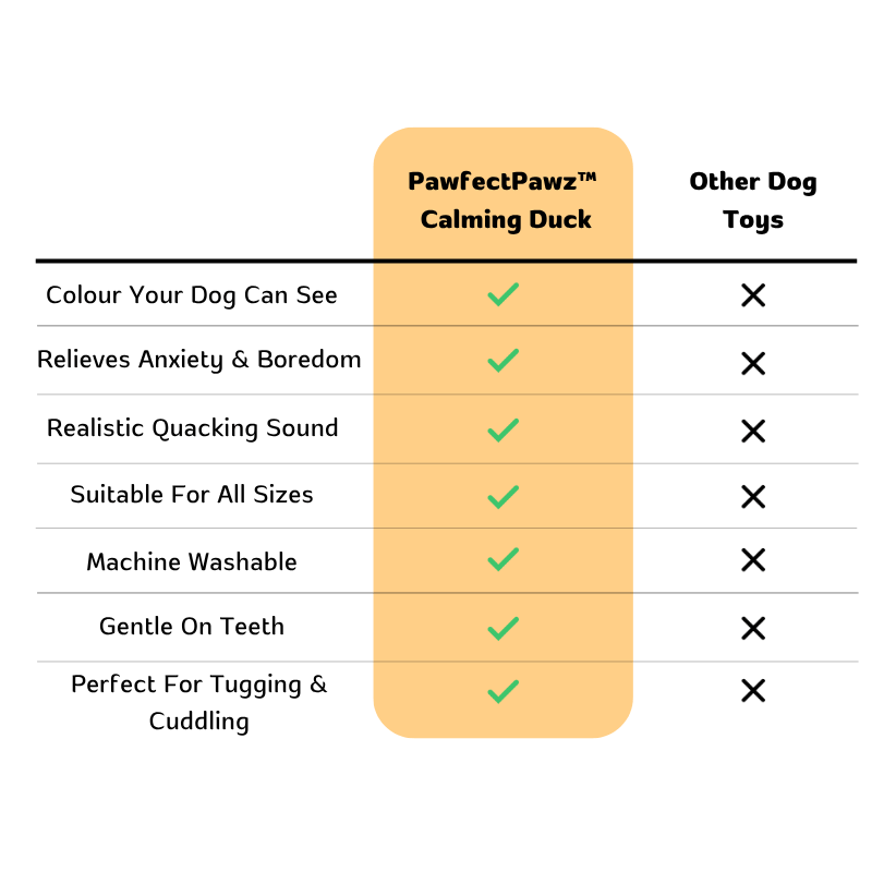 That's why the PawfectPawz Calming Duck is designed in a colour your dog can actually see and be drawn to.